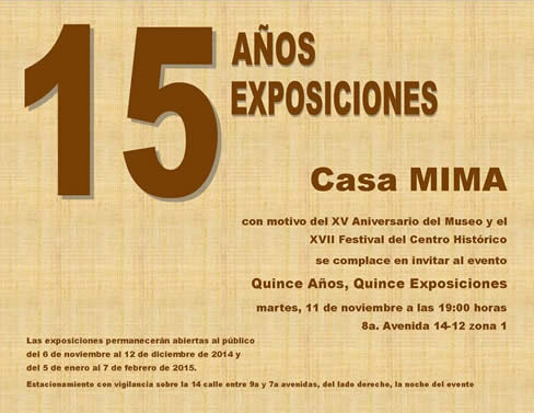 Con motivo del XV Aniversario del Museo y el XVII Festival del Centro Histórico se complace en invitar a la inauguración de Quince Años, Quince Exposiciones. Las exposiciones permanecerán abiertas
