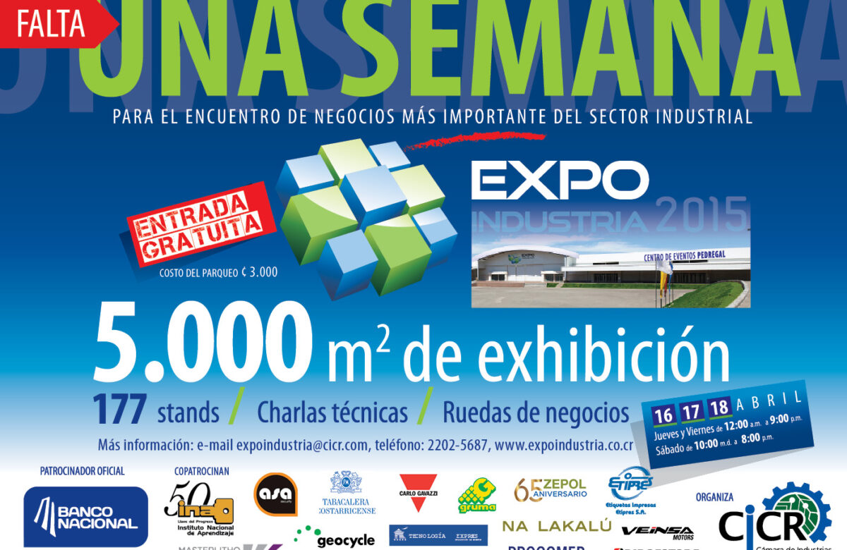 En el Centro de Eventos Pedregal, en Belén, Costa Rica, se llevará a cabo del 16 al 18 de abril Expo Industria.