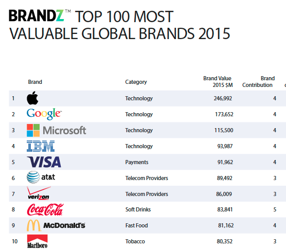 La décima edición del esperado ranking BrandZ Top 100 marcas globales más valiosas, presentado por WPP y Millward Brown, reveló que Apple recupera el título como la marca más valiosa