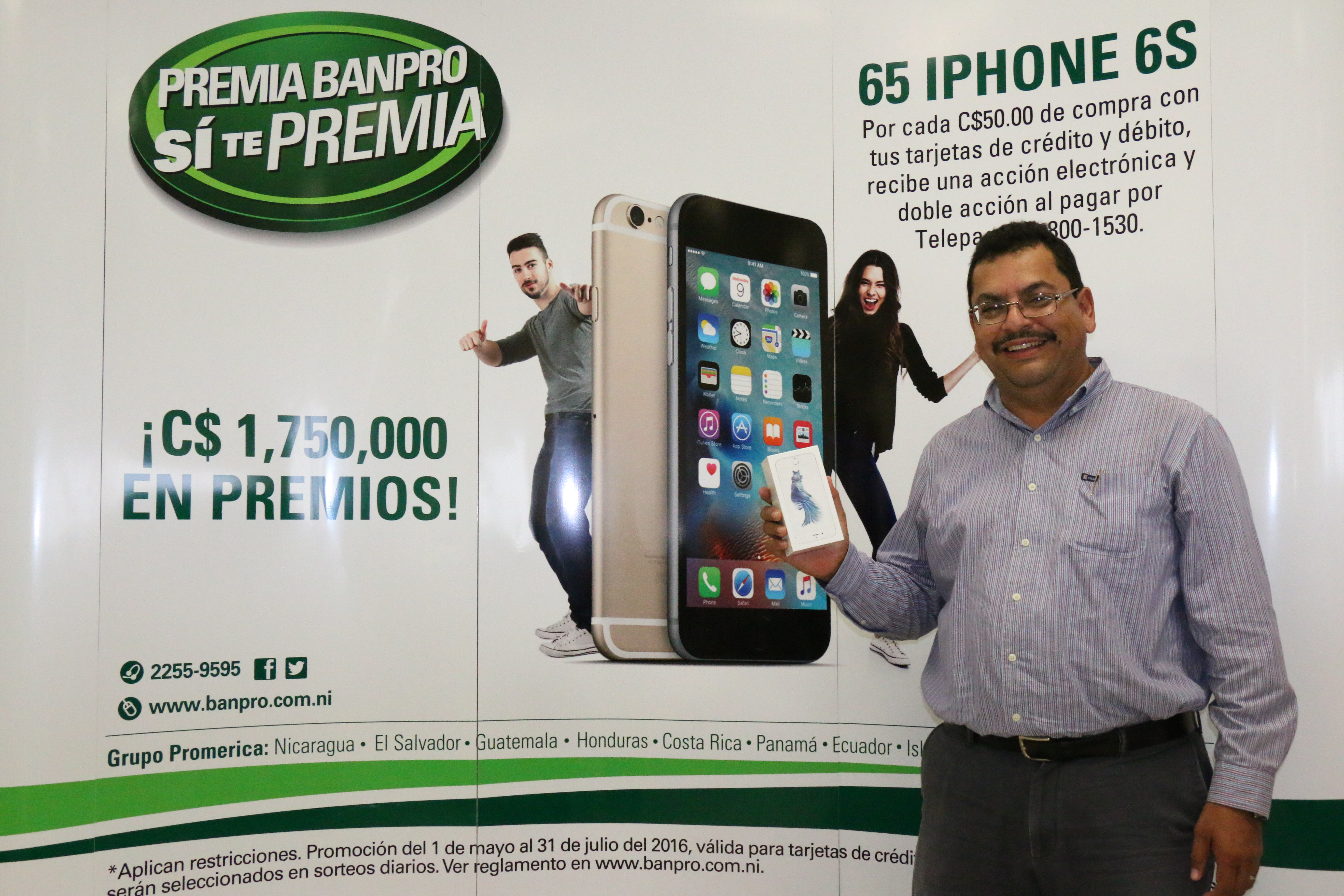 Marlon Alejando Robleto Alemán de Masatepe se convirtió en el primer feliz ganador de un iPhone 6S, en la popular promoción “Premia Banpro sí te Premia Madre y Padre 2016”,