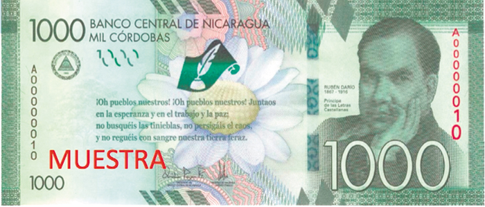 El Banco Central de Nicaragua pondrá en circulación un billete de 1000 córdobas para  abastecer la demanda de efectivo, facilitar al público la realización de sus transacciones y reducir el
