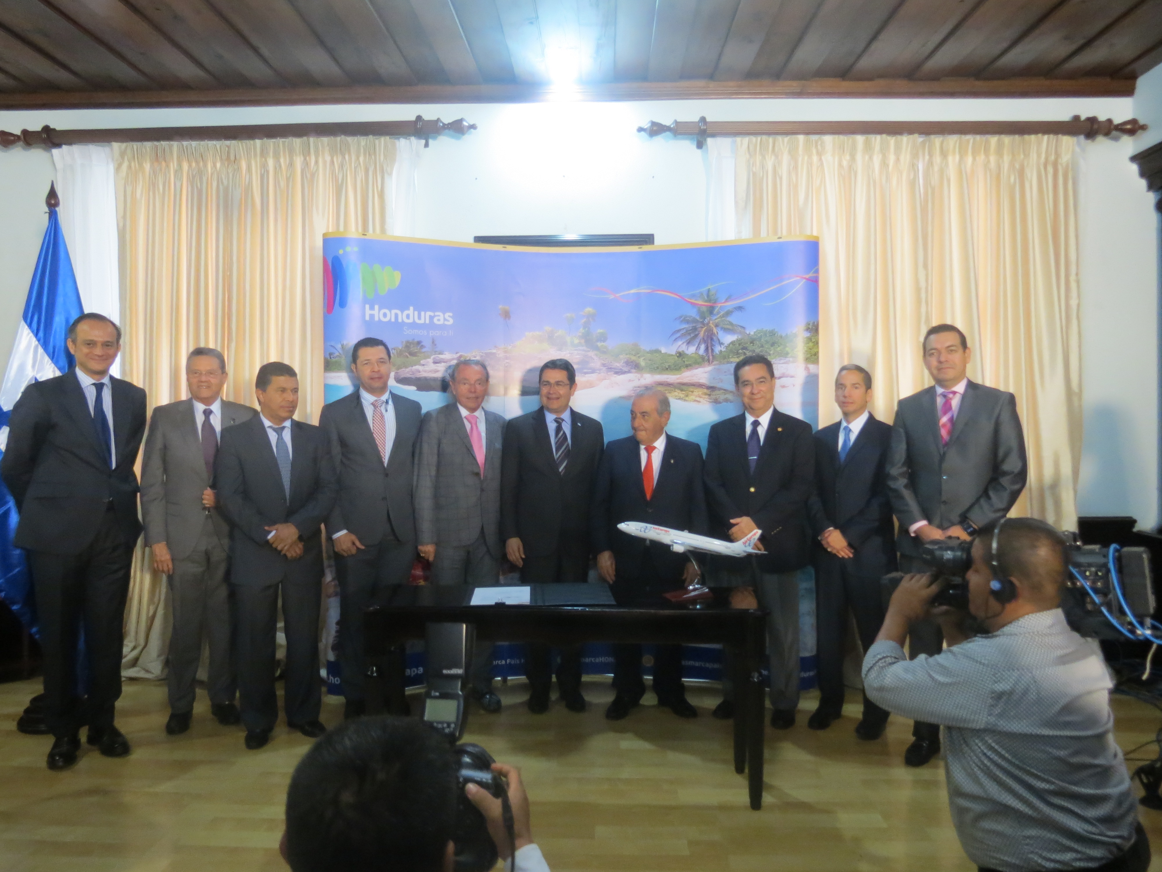 El Presidente de la República de Honduras, Juan Orlando Hernández, concreto la alianza entre Air Europa y el Instituto Hondureño de Turismo, acto realizado en el salón Lenca de Casa