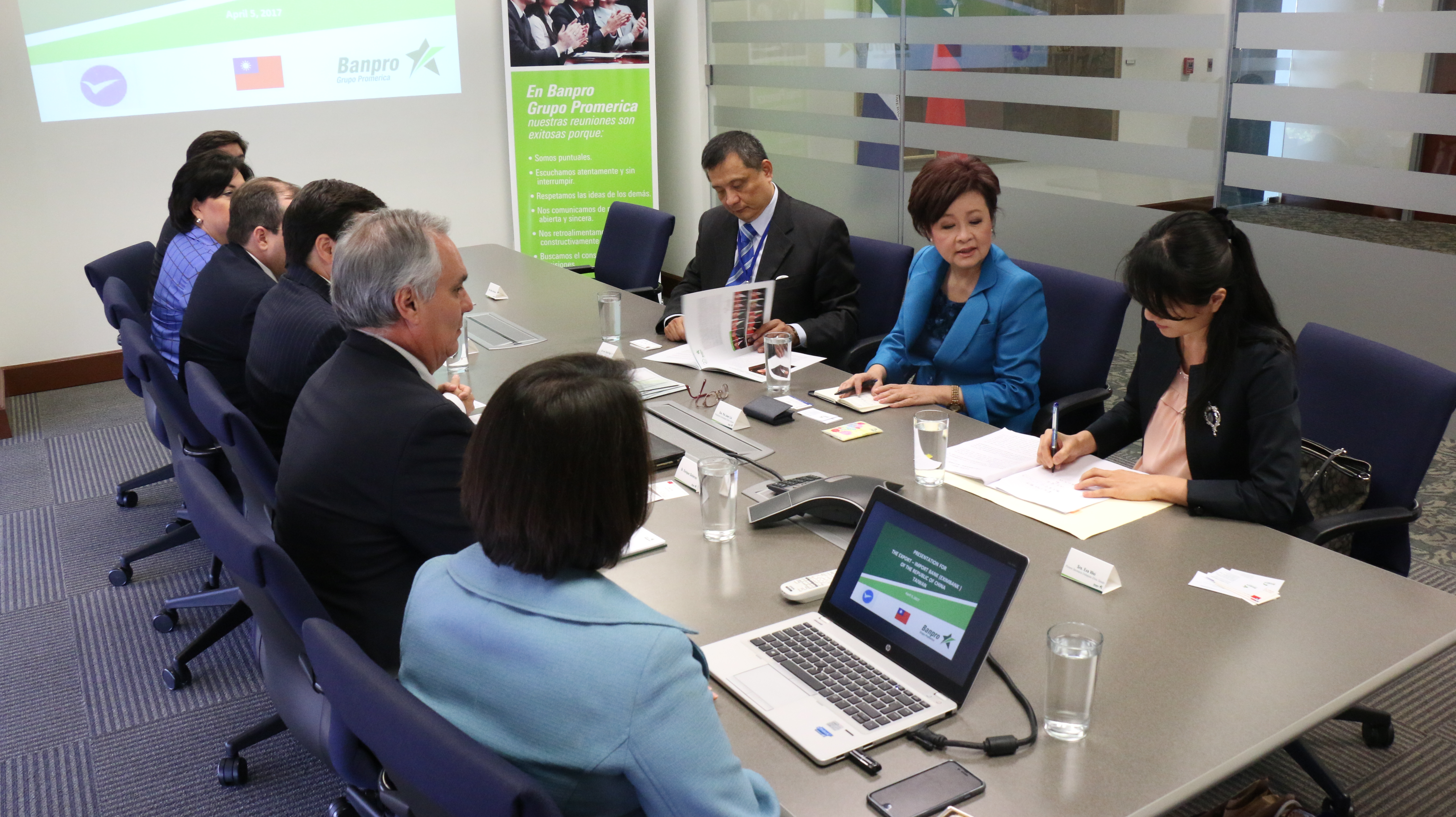 Una delegación de la República de China Taiwán, precedida por Pei-Jean Liu, presidenta de Eximbank de ese país asiático, visitaron el miércoles 5 de abril el Centro Corporativo Banpro, para