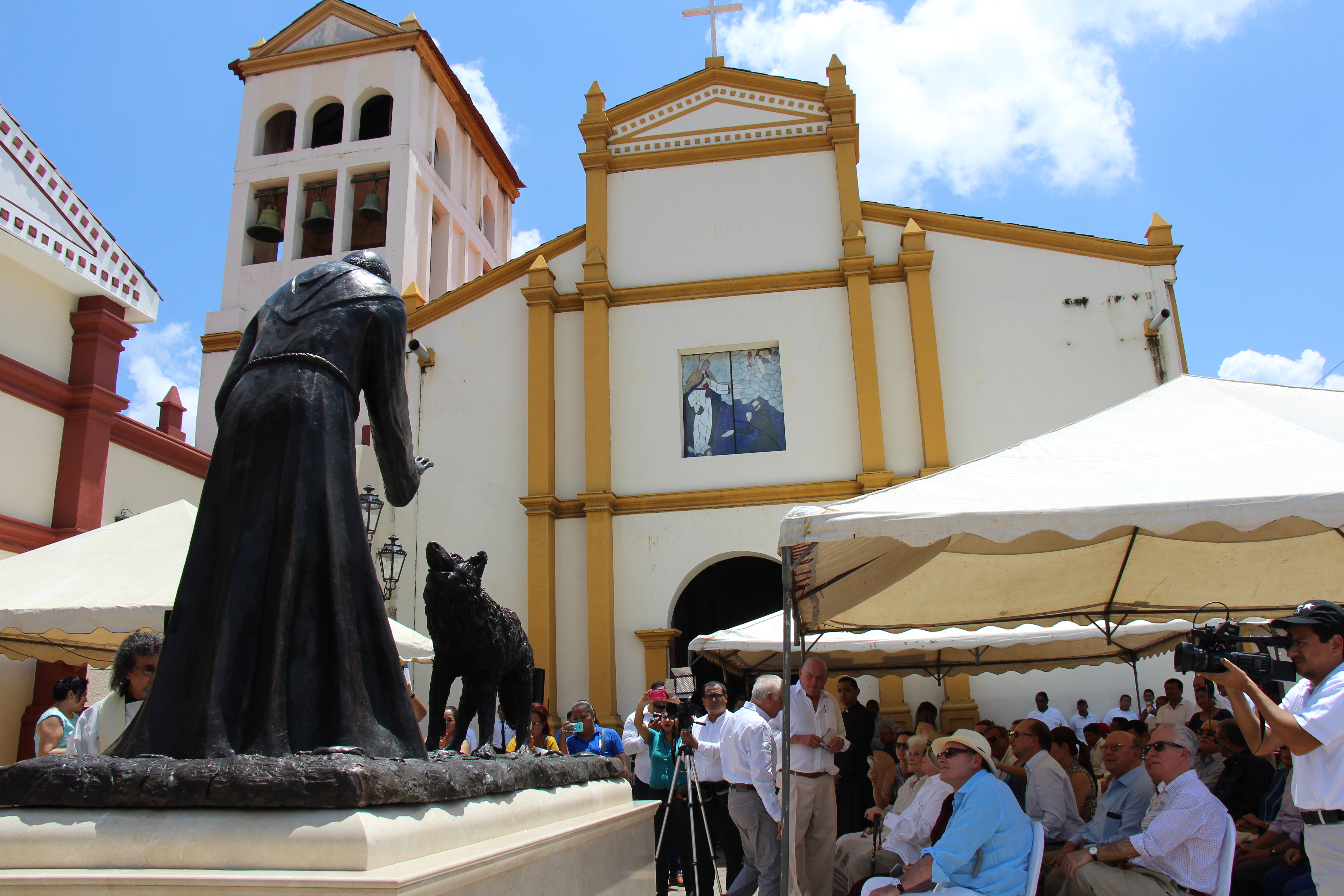 Ramiro Ortiz Mayorga y Patricia Gurdián de Ortiz, vicepresidente y presidenta de la Fundación Ortiz Gurdian (FOG) recibieron de la artista granadina, Maruca César de Gómez, una estatua de San