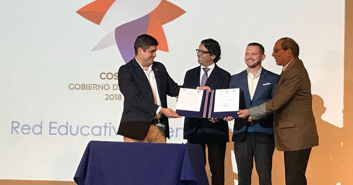 El presidente de la República de Costa Rica, Carlos Alvarado, firmó el acuerdo de Red de Educación Bicentenario, un proyecto que pretende conectar a los 4.659 centros educativos públicos del