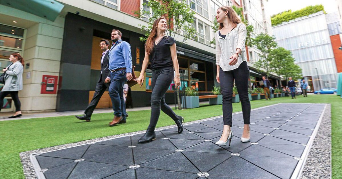 Es un sistema interactivo que convierte la energía cinética (producida por el movimiento) de las pisadas en electricidad y en datos.