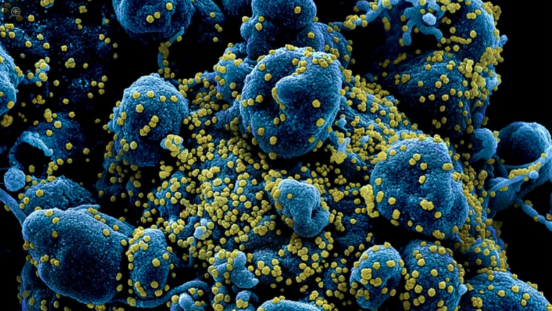 Microscopio electrónico muestra como se ve una celula humana atacada por el coronavirus