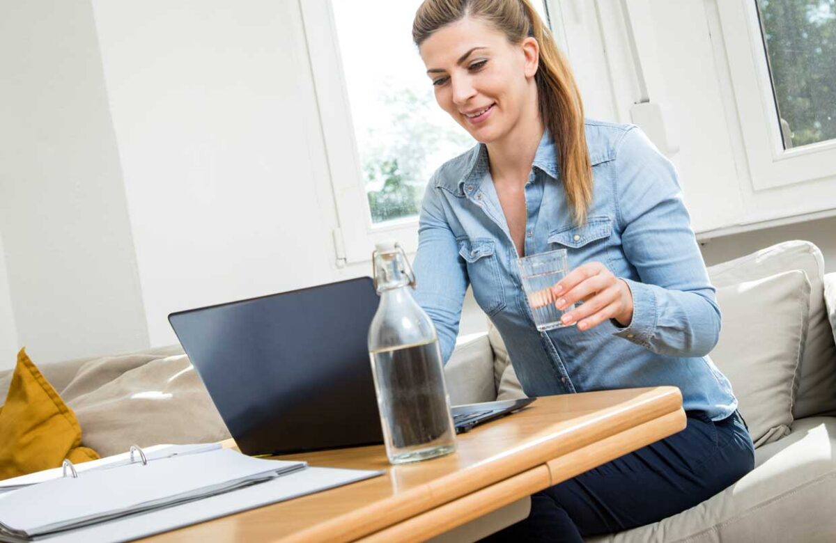 Si uno trabaja en una oficina o tiene un trabajo fijo, puede proponerse beber al menos medio vaso de agua al terminar una reunión o al regresar al escritorio o