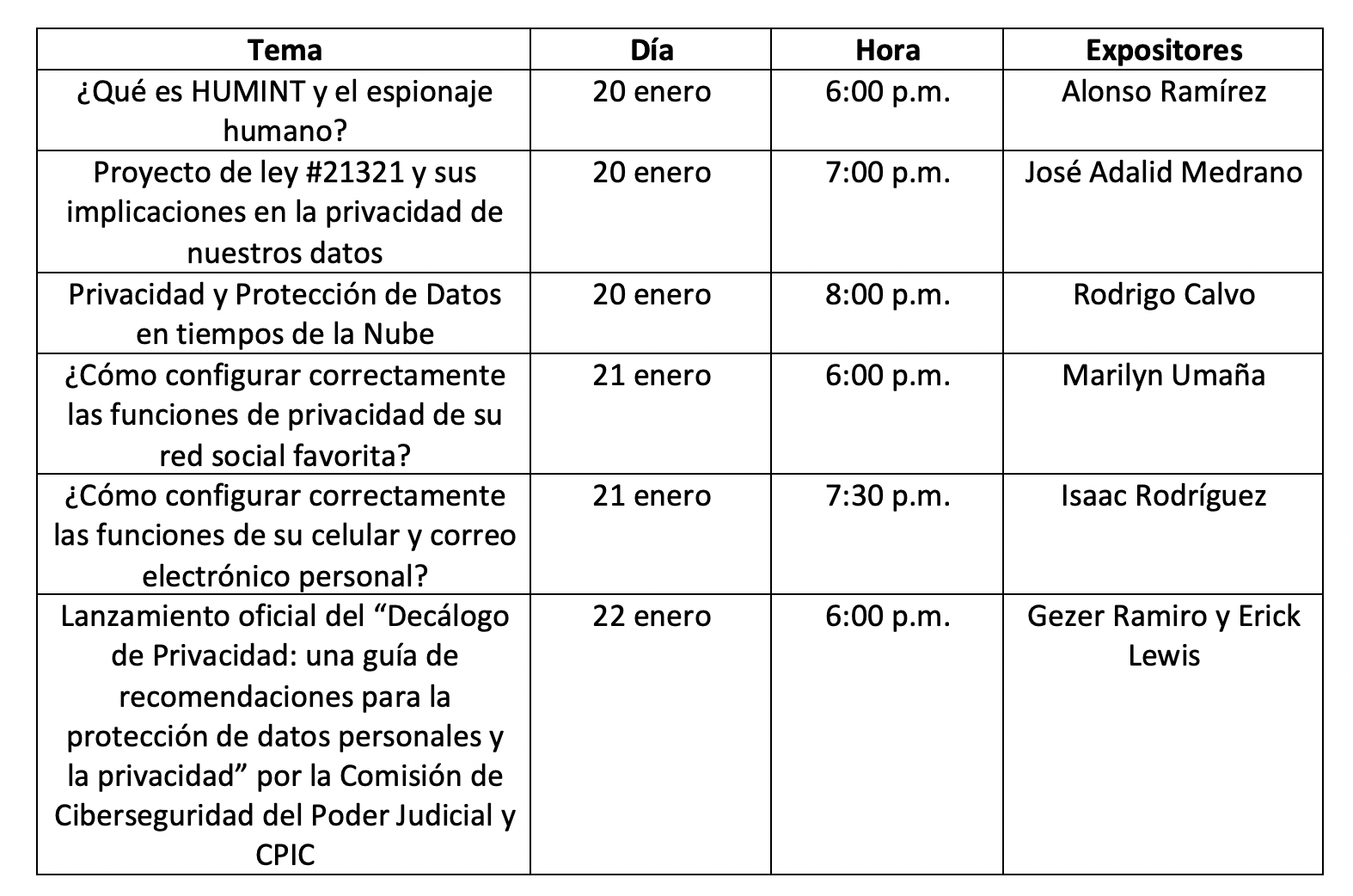 Para el experto, estar al tanto de temas como los que se tratarán en la jornada de charlas es muy importante tomando en cuenta que vivimos en un momento en que los delitos cibernéticos están tomando poder en la vida de muchas personas que han enfrentado verdaderas pesadillas por ciberdelincuentes que estafan y realizan otro tipo de delitos a través del internet.