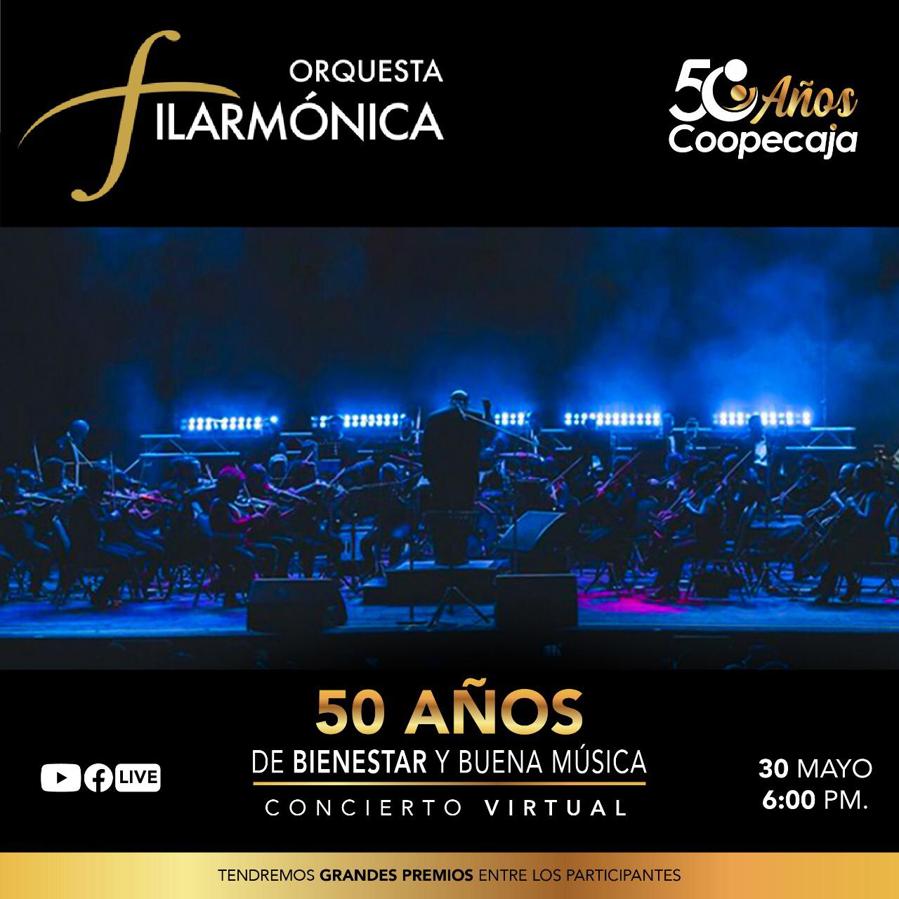 Para cerrar con broche de oro: el próximo domingo 30 de mayo a las 6 p.m. se presentará un concierto gratuito con la Filarmónica Nacional con géneros musicales para todos los gustos como rock, plancha, pop y tropical desde el Facebook y el canal de YouTube de Coopecaja.