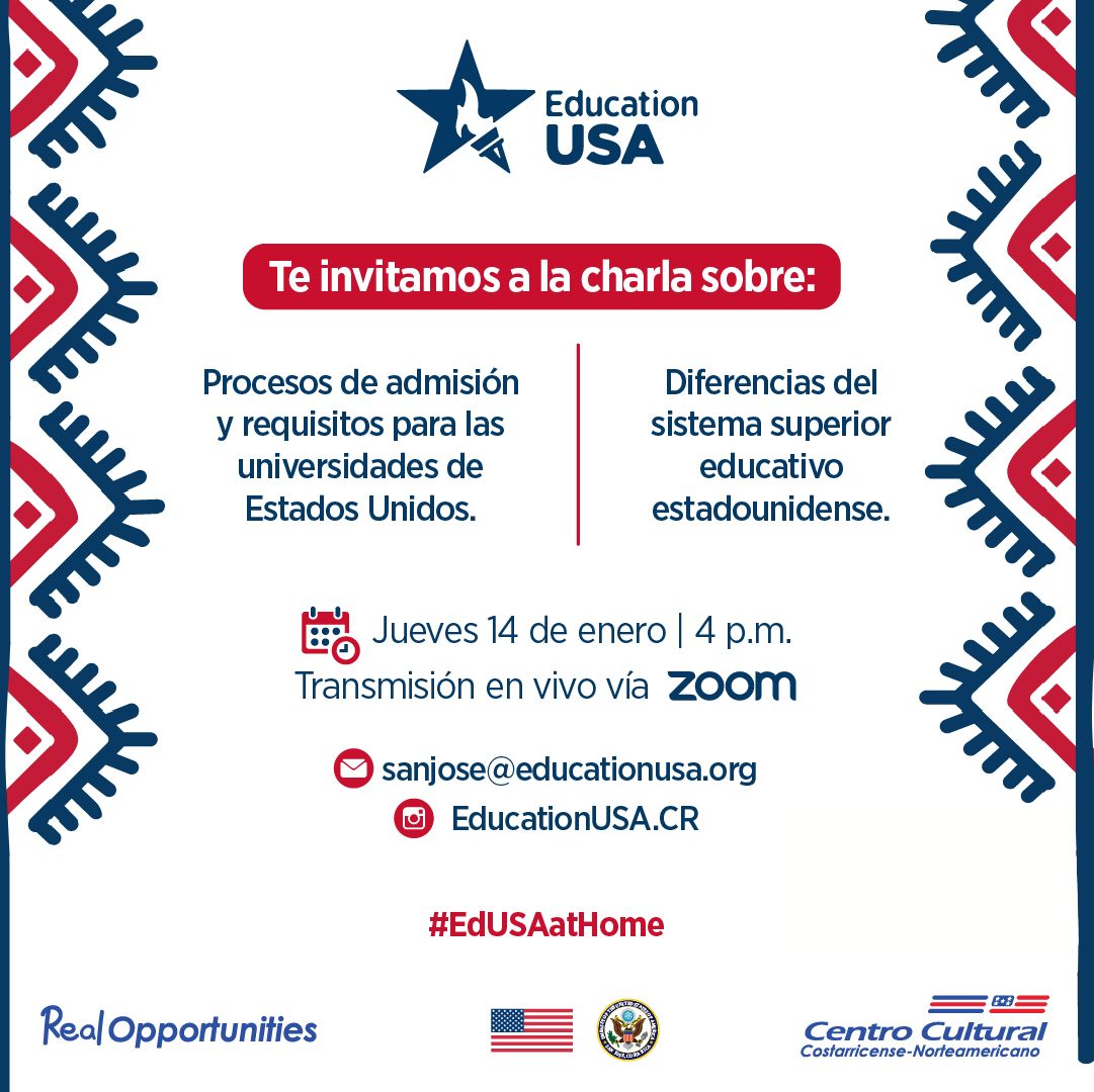Etiquetas: Centro Cultural Costarricense Norteamericano (CCCN) / charla virtual / EducationUSA Costa Rica / Estados Unidos