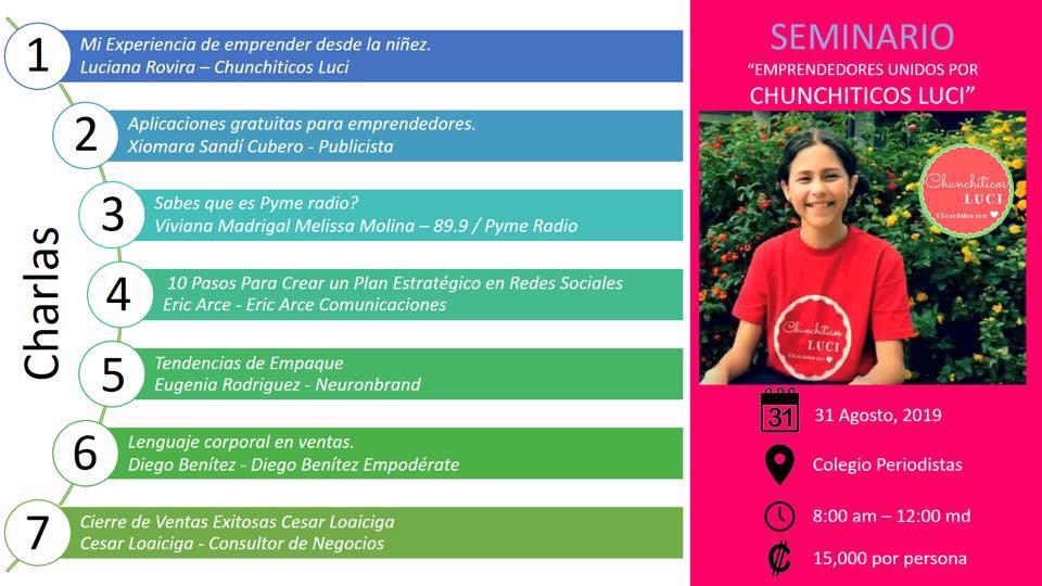 Etiquetas: Agenda / Emprendedores unidos por Chunchiticos Luci / Luciana Rovira / niña emprendedora / Seminario