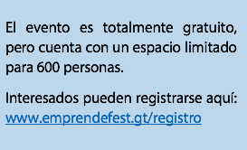 Etiquetas: Agenda / Ciudad de Guatemala / Emprende Fest / Emprendedores / Guatemala