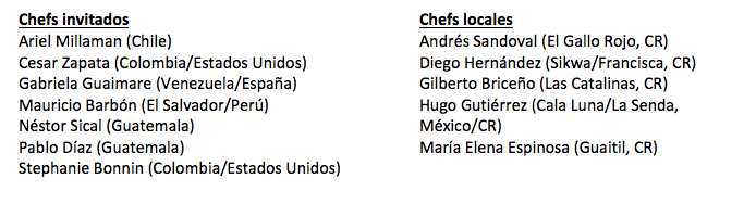 La comida y estilos de vida saludables siempre han sido pilares del mantra de Ocaso Festival, y como tal, se ha añadido toda una experiencia gastronómica internacional muy especial a la celebración.  Bajo la dirección y coordinación del Chef costarricense, Pablo Bonilla– de Sikwa y Francisca Restaurante; y recientemente destacado en Forbes y National Geographic, liderará equipos de chefs de Chile, México, Colombia, Venezuela, Guatemala, El Salvador y Estados Unidos. Cada día, un chef internacional se unirá a algunos de los mejores chefs locales de Costa Rica para brindar una experiencia culinaria única. A continuación, un resumen de los chefs que estarán presentes en el Festival: