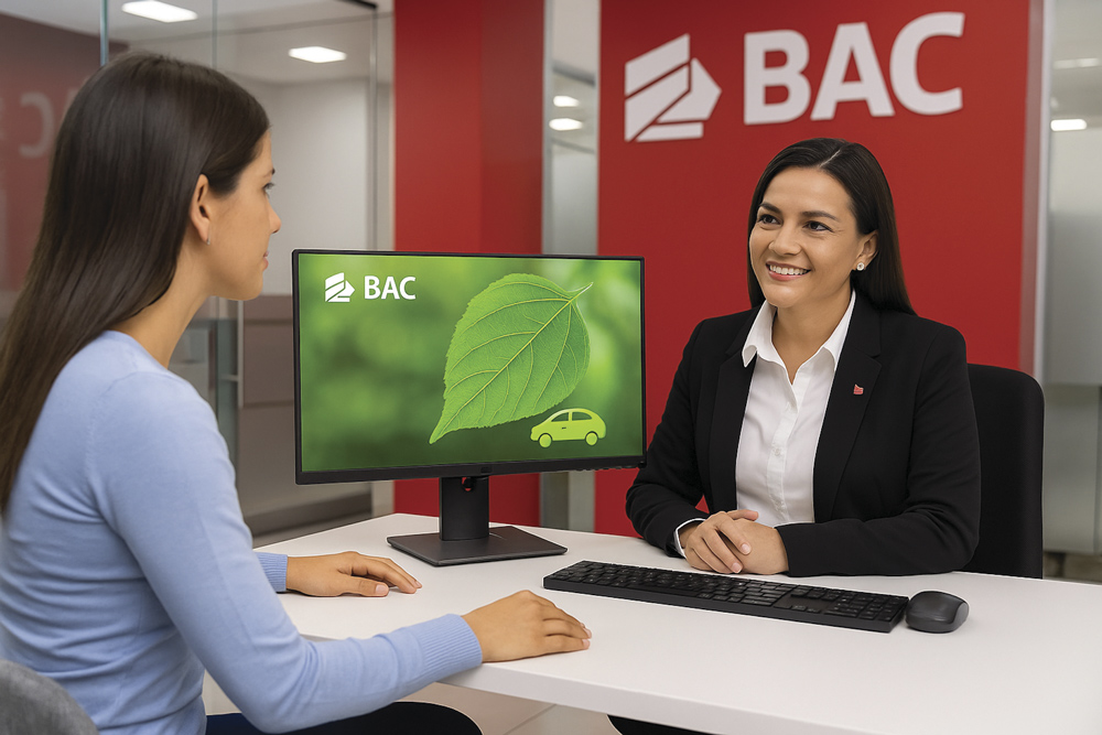 El compromiso ambiental de BAC se articula dentro de su Estrategia de Triple Valor, especialmente en los ejes de Finanzas Sostenibles, Clima y Naturaleza. La entidad promueve proyectos en áreas como energía limpia, ecoeficiencia, movilidad sostenible y economía circular. Entre sus iniciativas se destacan la Ruta Eléctrica BAC, la tarjeta BIO —hecha de material natural compostable—, la instalación de paneles solares y el Sistema de Gestión de Huellas Ambientales, que permite controlar impactos operativos.