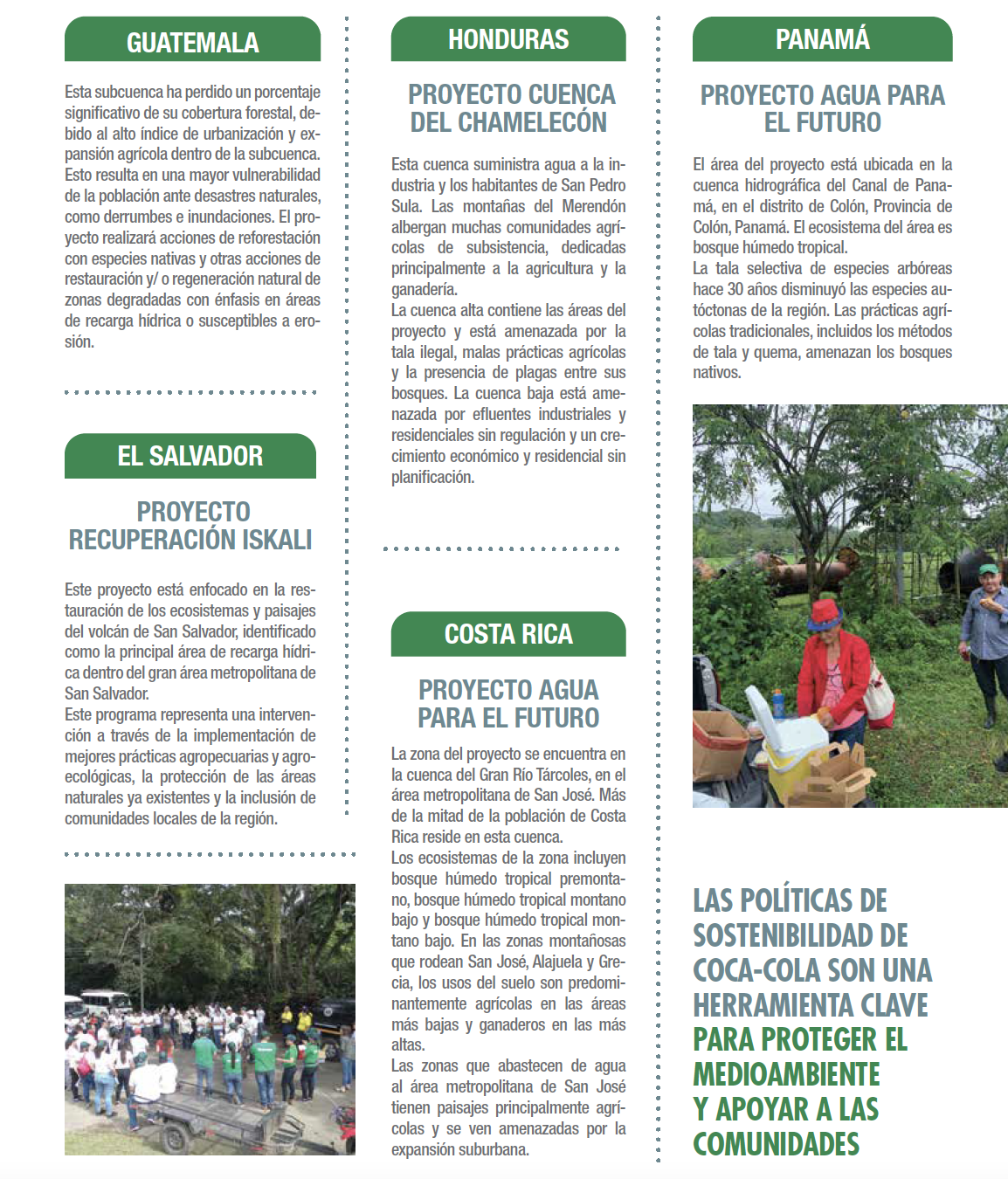 “Las iniciativas en torno a la gestión y conservación del agua son fundamentales, dado el papel crítico que juega este recurso, tanto en la fabricación de los productos, como en la sostenibilidad de las comunidades locales. Hemos implementado una variedad de proyectos con el objetivo de promover la sostenibilidad del agua, cumpliendo con nuestro compromiso global de ‘reabastecer’ al medioambiente una cantidad de agua equivalente a la que utiliza en la producción de sus bebidas”, explica William Segura, director de Asuntos Públicos, Comunicación y Sostenibilidad para Coca-Cola.
