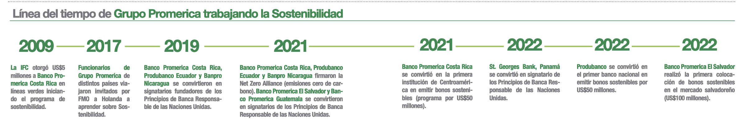 En el 2019, el Grupo dio otro gran salto. Banco Promerica Costa Rica, Produbanco Ecuador y Banpro Nicaragua se convirtieron en signatarios fundadores de los Principios de Banca Responsable de las Naciones Unidas; en el 2021 se unieron a dicho esquema Banco Promerica El Salvador, Banco Promerica Guatemala y, en el 2022 St. Georges Bank de Panamá.