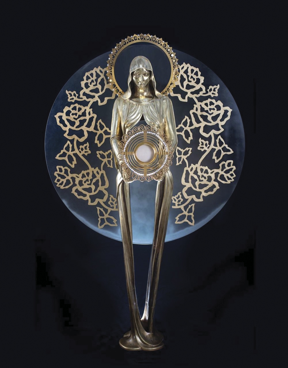 Uno de los trabajos más emblemáticos de la galería es la custodia realizada para la Jornada Mundial de la Juventud en Panamá. Diseñada y creada por Armando Granja, esta pieza de 2,20 metros de altura fue bendecida por el papa y destaca por su valor estético y por su profundo significado: fue fundida con 18 000 cartuchos de bala desactivados, convirtiéndose en un símbolo de paz y amor.