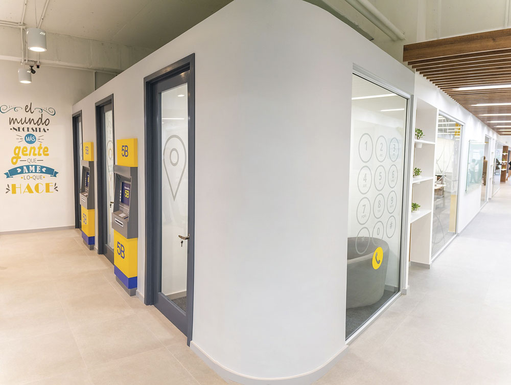 Caja Express: agente bancario para la atención presencial de cuentahabientes y usuarios de varios bancos que necesiten realizar transacciones de caja de forma rápida, con horarios extendidos y espacios de autoservicio.