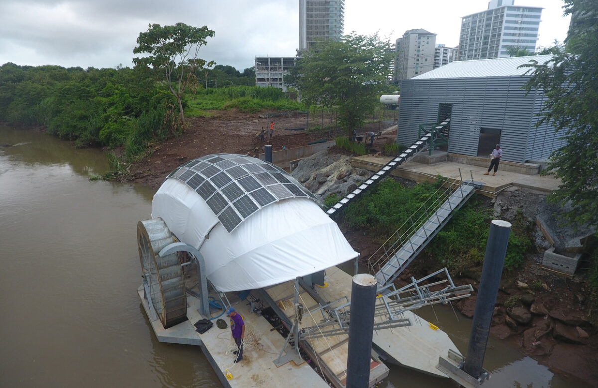 Marea Verde concluyó la instalación de “Wanda Díaz”, la primera rueda hidráulica en América Latina que recoge desechos sólidos flotantes del río previniendo que lleguen al mar, gracias al financiamiento