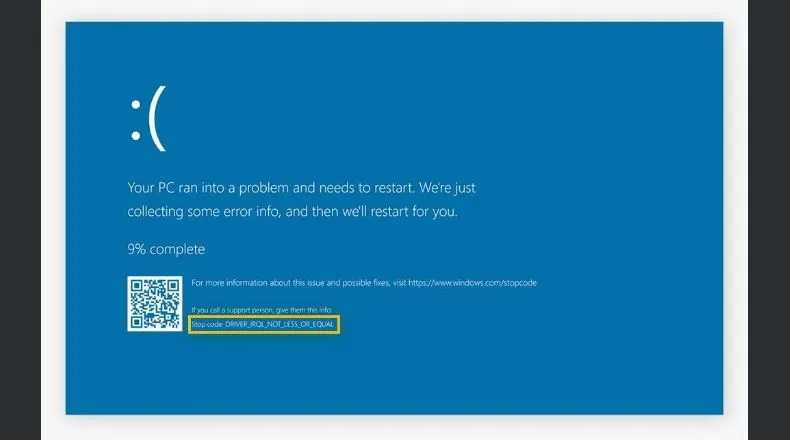Con un fondo azul claro y el dibujo de dos puntos y un paréntesis, similar al emoji de tristeza, la "pantalla azul de la muerte" aparece cuando el sistema operativo