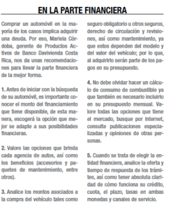 Pero sobre todo recuerde, “nunca compre un carro por moda o porque alguien cercano lo hizo, sino porque satisface sus necesidades”, recalca Fernández.