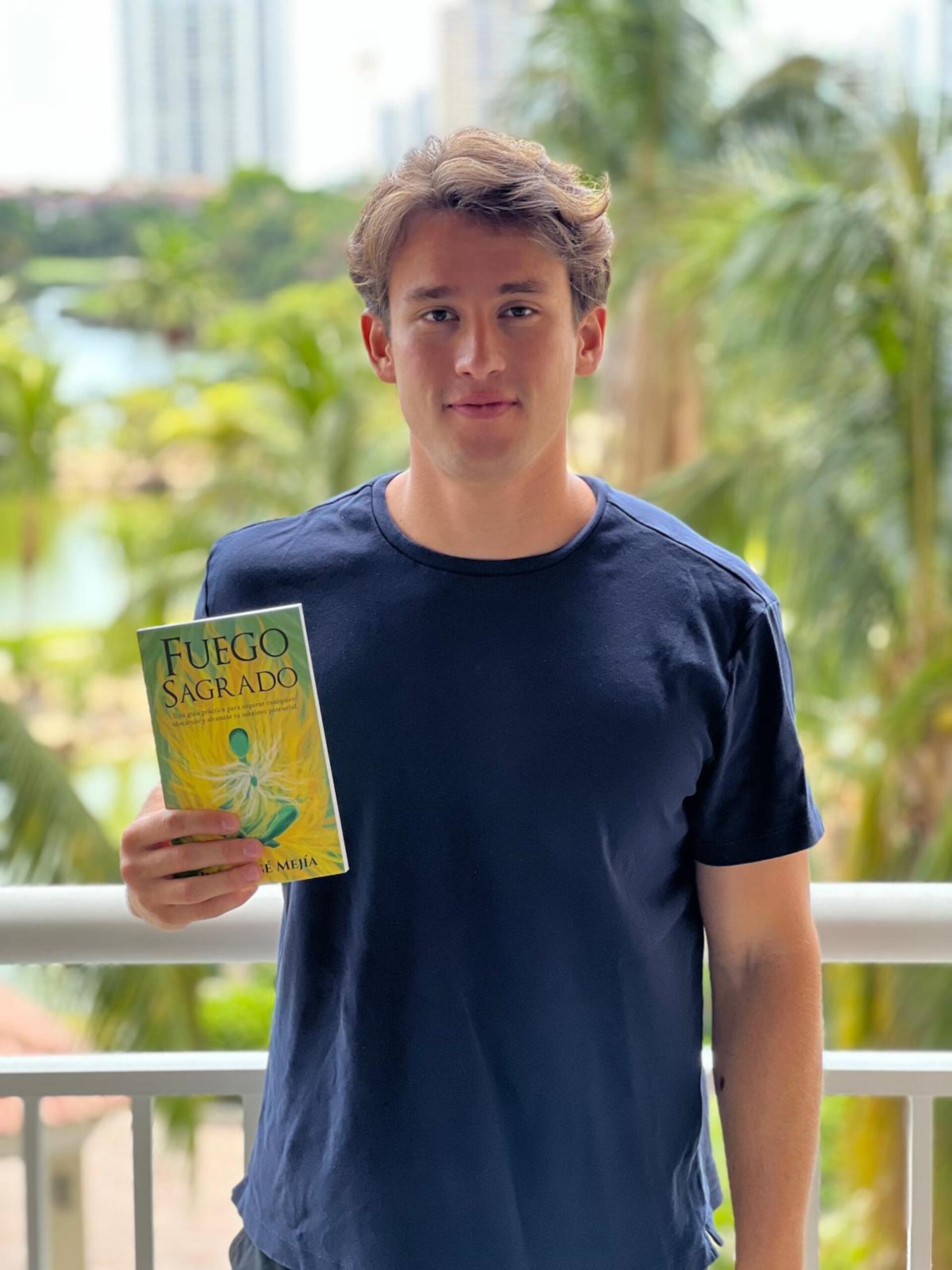 El libro “Fuego Sagrado” fue publicado en el año 2023 y puede adquirirse en Amazon. El nombre nace a raíz del impacto positivo que tuvo en su vida la presencia de su entrenador de fútbol, Juan José Ordoñez, quien también se convirtió en su padrino.