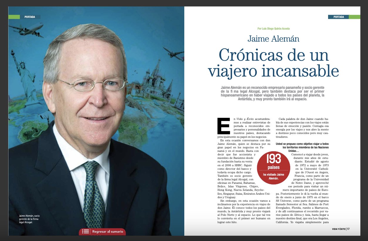 Jaime Alemán es un reconocido empresario panameño y socio gerente de la firma legal Alcogal, pero también destaca por ser el primer hispanoamericano en haber viajado a todos los países del planeta, la Antártida, y muy pronto también irá al espacio.