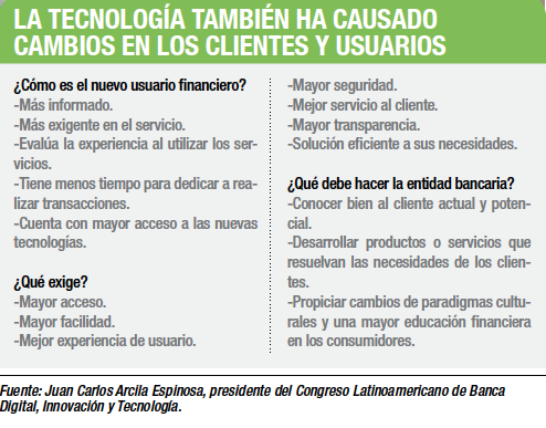 Ahora, a través de la banca digital y banca móvil, el cliente tiene una experiencia diferente, en la que posee dominio de sus trámites, porque los hace donde y cuando quiere, y fomenta que las entidades bancarias innoven en la colocación de nuevos productos y servicios.