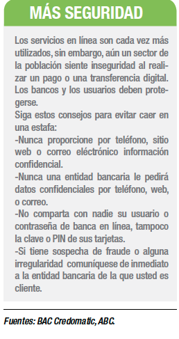 En cuando a la seguridad, la directora ejecutiva de la Asociación Bancaria Costarricense (ABC) recalca que los bancos han invertido millones de dólares en la seguridad de sus plataformas de servicios electrónicos.