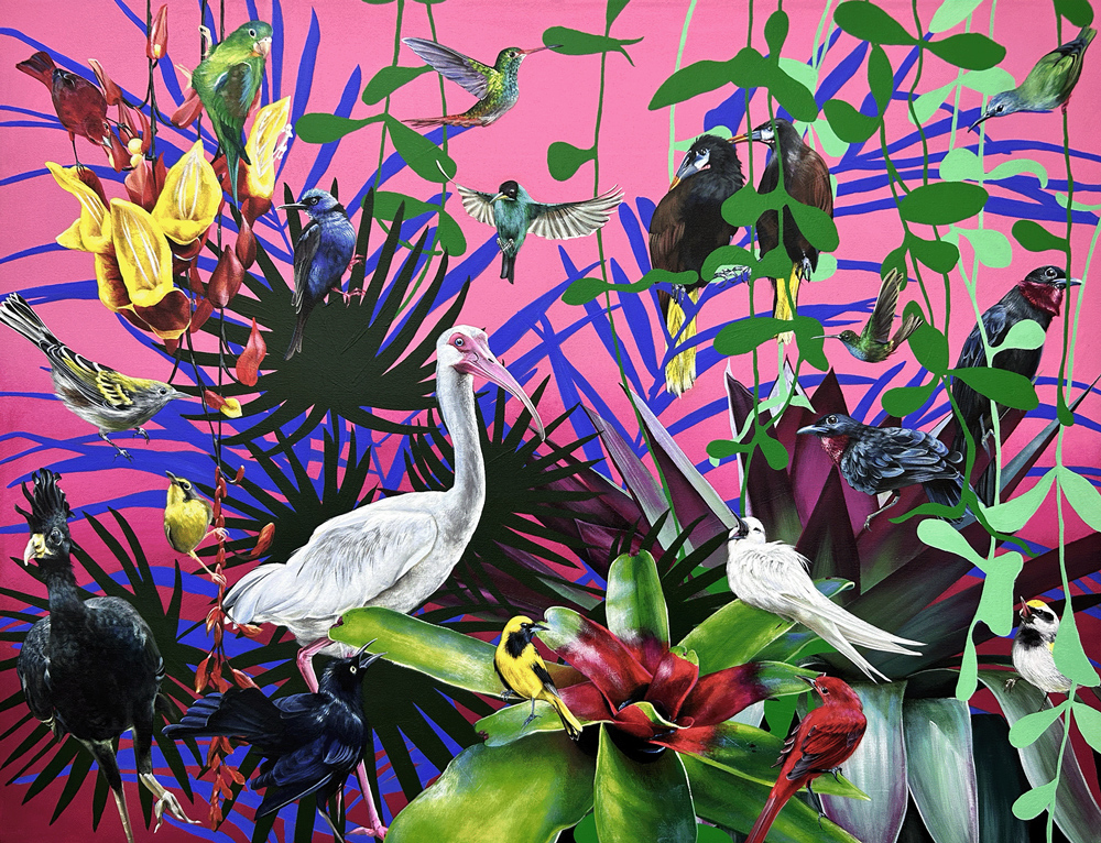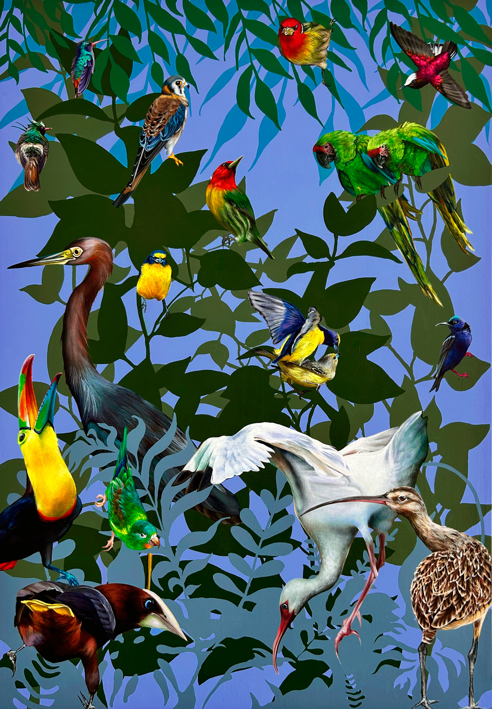 “En esta nueva muestra, aún sin bautizar, pretendo realizar una instalación, así como varias obras de mediano y gran formato. En una obra en concreto, planteo la posibilidad de preguntarnos ¿cómo se vería un buitre disfrazado de guacamayo?”.