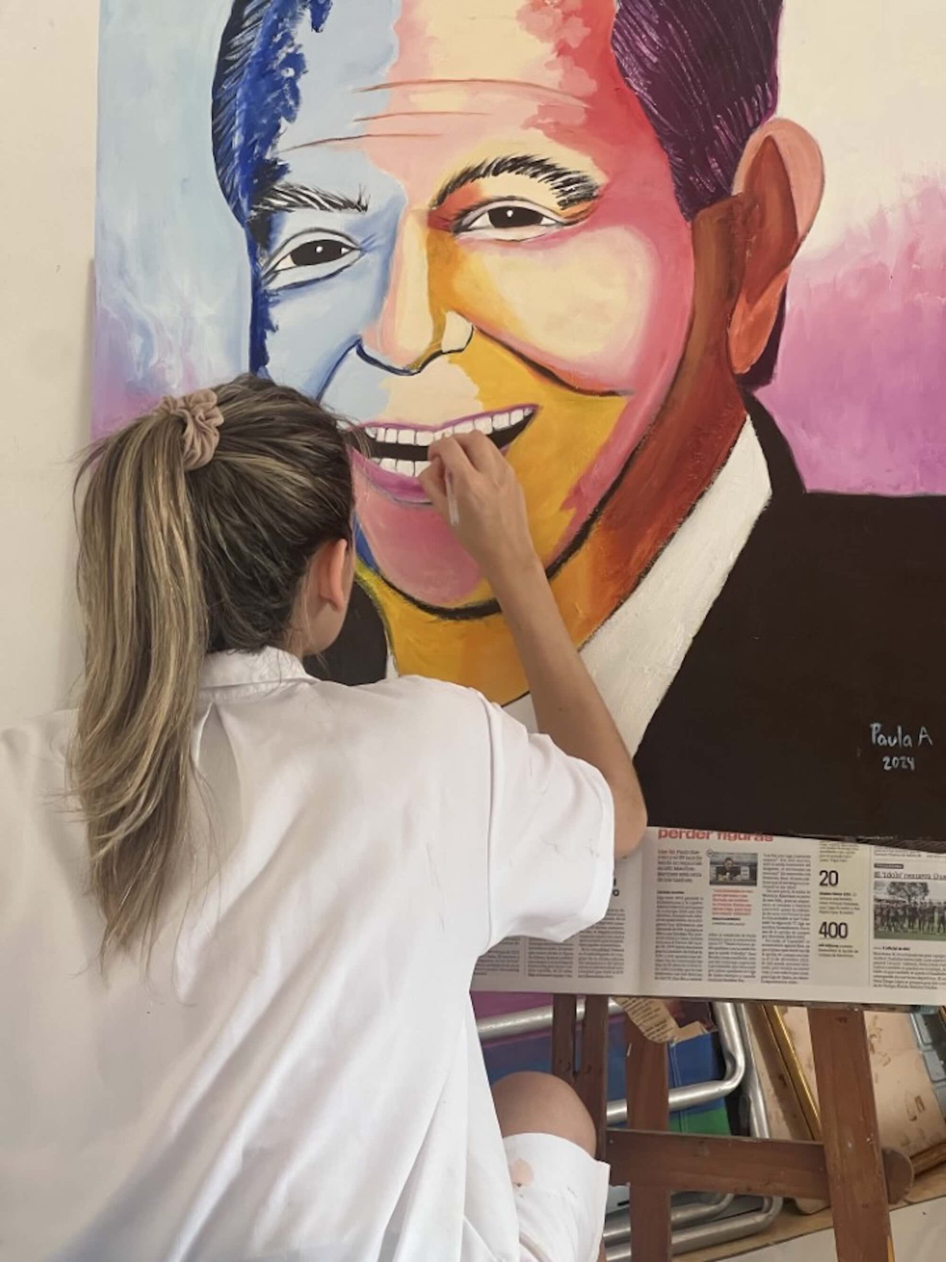 Pinta desde los seis años, aunque reconoce que en los últimos meses lo ha hecho con menos frecuencia por falta de tiempo. La última vez fue en 2024, cuando realizó un retrato de su abuelo, figura importante en su historia personal y profesional.