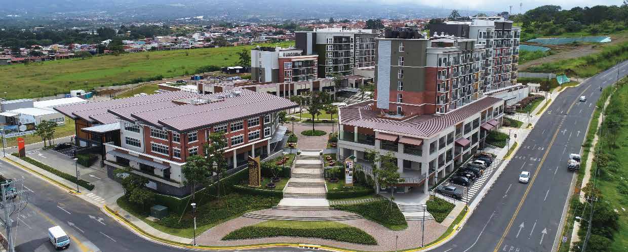 “Escazú Village es nuestro nuevo proyecto de uso mixto que combina residencias, comercio y oficinas; ofrece 135.000 m². Cuenta con gran variedad de restaurantes, reconocidas tiendas de departamentos, un moderno gimnasio y otros servicios. De igual manera, los residentes tienen acceso a una amplia red de negocios a su alrededor como bancos, supermercados, gasolineras y centros de entretenimiento. Tiene, además, más de 5.000 m2 de parques y plazoletas con senderos y vías adoquinadas e iluminadas, vistas a las montañas de Escazú y Heredia”, detalla Soley.