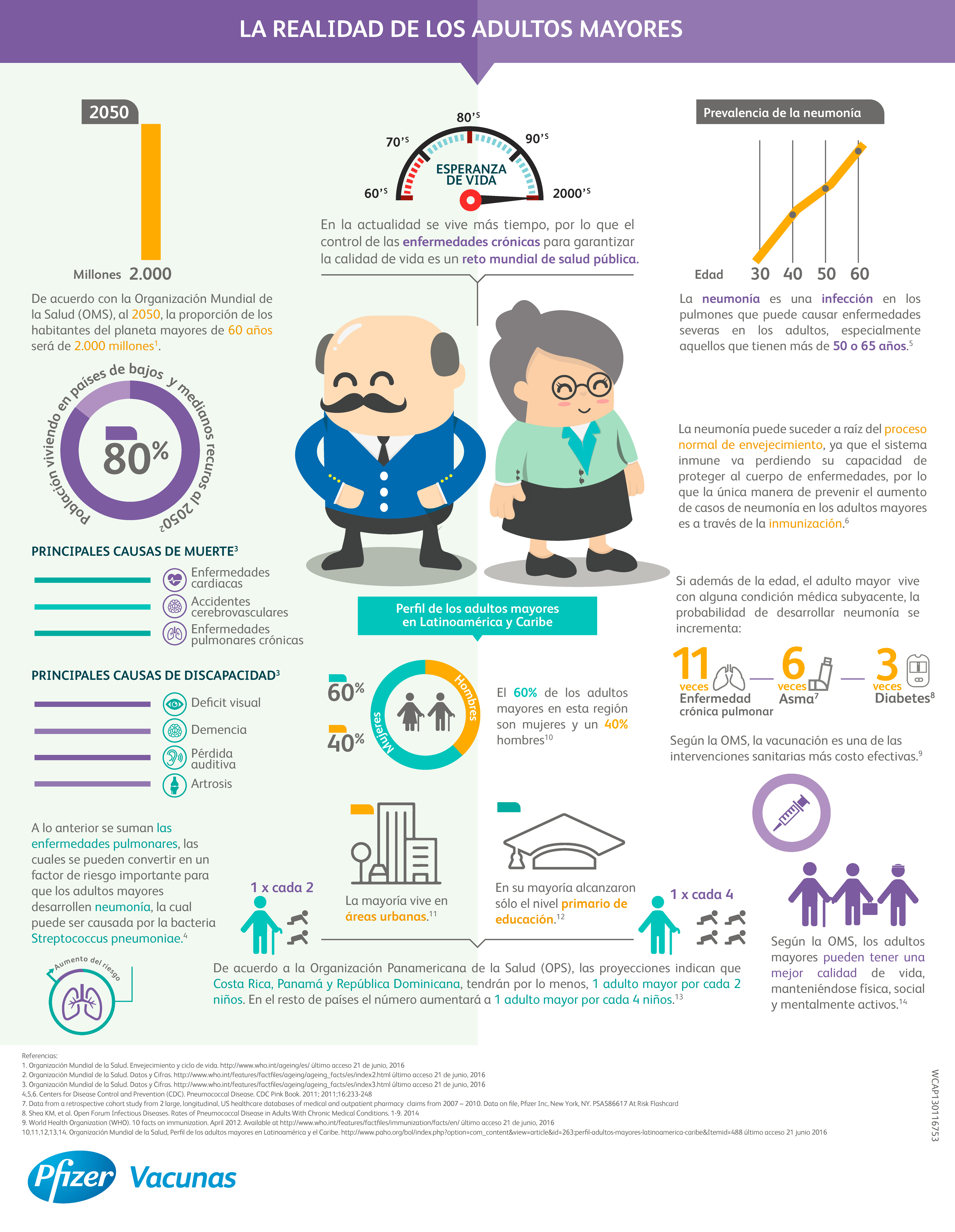 El informe fue preparado en conjunto por la OPS y el Instituto Merck para el Envejecimiento y la Salud. Y analiza la situación socioeconómica de los adultos mayores en Latinoamérica y el Caribe en cuatro subregiones:infografico