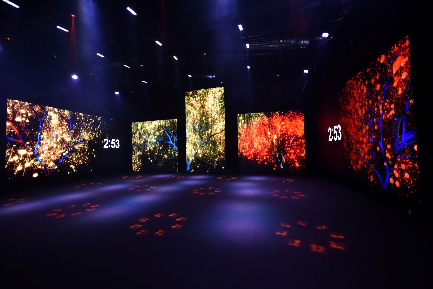 La instalación, ubicada en la Plaza de la Cultura, ofrece una experiencia inmersiva con más de 100 metros cuadrados de pantalla, más de 30 luces robóticas y sensores para que los asistentes interactúen.