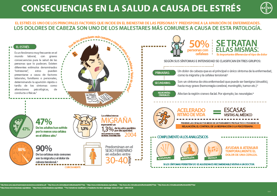 Se calcula que el 50% de las personas que padece cefalea o dolor de cabeza se tratan ellas mismas. Por lo que, frente al acelerado ritmo de vida que llevan las personas en la actualidad, las visitas al médico se vuelven escasas. “Sin embargo, es recomendable prevenir las cefaleas por medio de un tratamiento profiláctico o a través de técnicas que permitan controlar el estrés como la relajación, el control de la respiración o la psicoterapia”, comentó el Dr. Herbert Vides, asesor médico de Bayer durante una conferencia de prensa donde dio a conocer la empresa esta innovación. “Así también existen alternativas como la acupuntura, meditación y música, que ayudan a reducir temporalmente el dolor de una cefalea”, agregó Vides.
