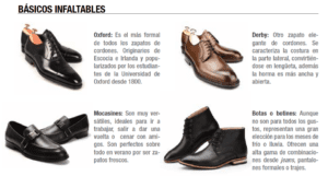En términos de cantidad, los conocedores aseguran que depende de muchas variables, pero de fijo debe de tener un Derby, un Oxford, un mocasín y unos botines; tanto de amarrar como con zíper.