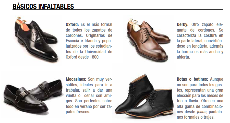 Calzar los pies es todo un arte, y los conocedores aseguran que los zapatos dice mucho de la persona que los usa. Para estar siempre a tono es básico tener respuesta a las siguientes preguntas: ¿cuáles son los zapatos que debo usar para un traje formal?, ¿en caso de un evento informal cuáles puedo ponerme? y ¿cuáles son los colores indispensables que debo tener?