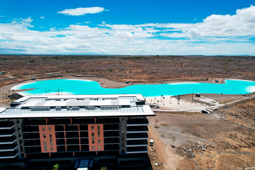 Con 7 playas de arena blanca, una isla central y un sendero de 1.6 km, la laguna se integra como la amenidad central del primer desarrollo urbano de uso mixto de Guanacaste, cuya primera etapa residencial abrirá sus puertas en 2026.