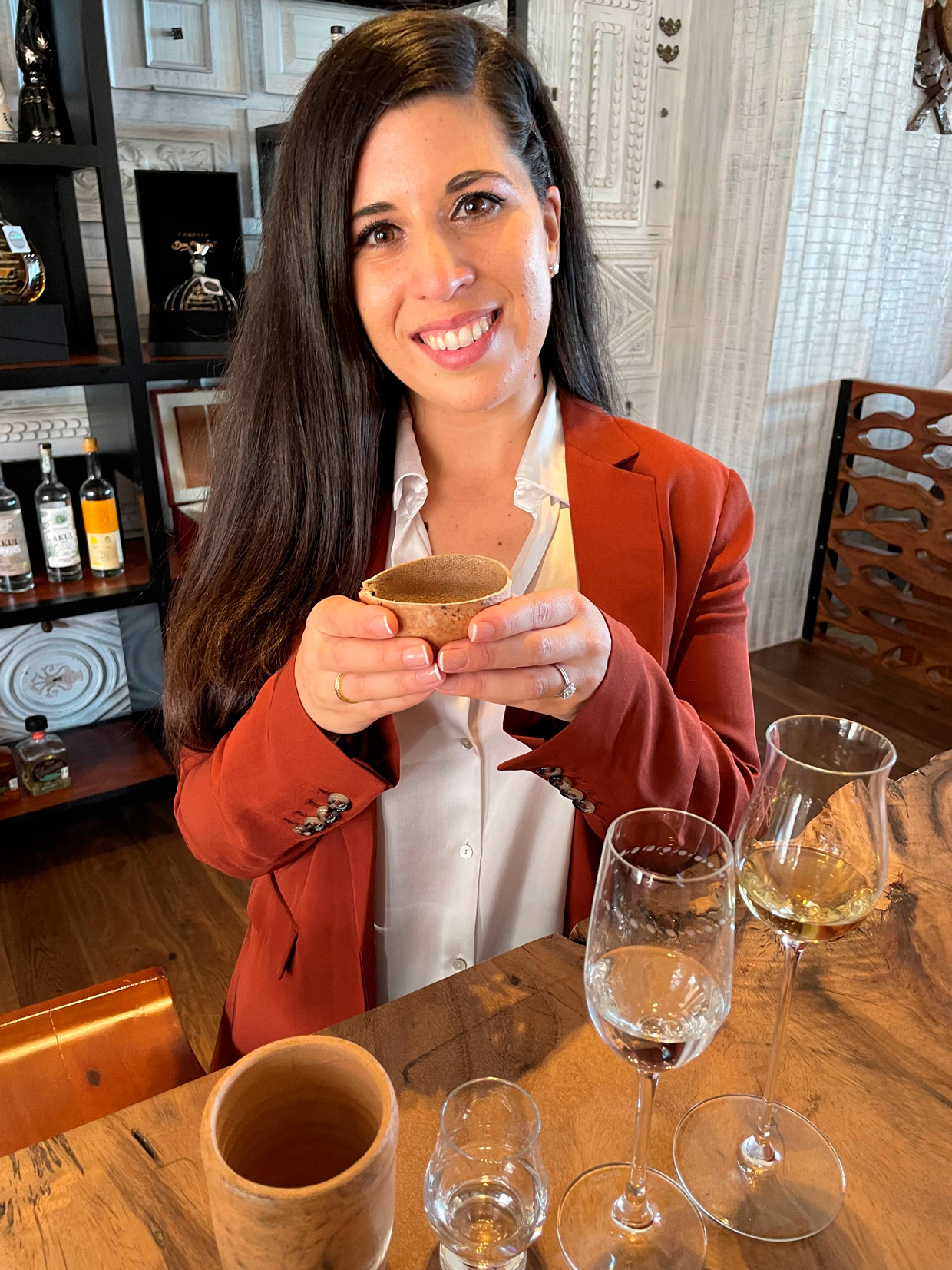 Tras haber estudiado el tequila y el mezcal al nivel de un sommelier de vinos, Ana Martínez se ha convertido en una experta en licores de agave. Tiene la habilidad de guiar a los huéspedes en un viaje degustación tras degustación, pues con sus sabores permite estar en diversas regiones mexicanas que cultivan las plantas de agave y destilan sus licores.