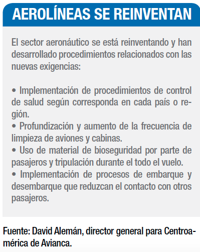 “Una vez que eso suceda, en Avianca estamos listos para retomar operaciones de manera paulatina, para volver a conectar empresas, negocios, países y familias en el marco de esta nueva normalidad y en línea con la demanda que cada mercado tenga. Hoy por hoy la reactivación de la conectividad aérea es fundamental para el desarrollo de todos los países de la región pues permite dinamizar el turismo, los negocios, los estudios y por supuesto, los reencuentros familiares y es por eso qué en Avianca esperamos retomar nuestros vuelos lo antes posible”, detalla David Alemán, director general para Centroamérica de Avianca.