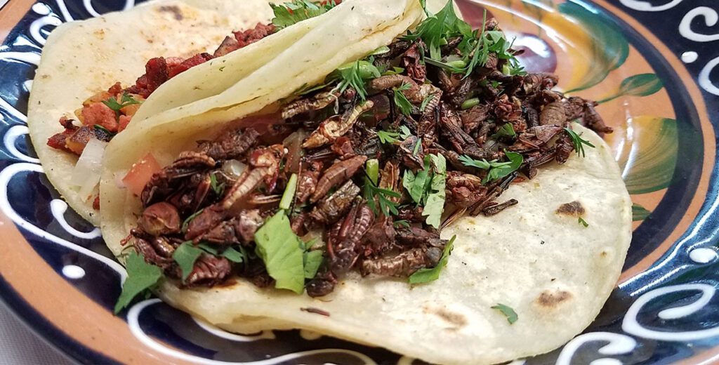 Chapulines. Chapulín se les llama a los grillos y saltamontes. Se sirven en tacos y son aderezados con salsa picante. Crocantes y grasosos, estos insectos aportan sabor a los tacos, colocándolos así como un plato muy codiciado.