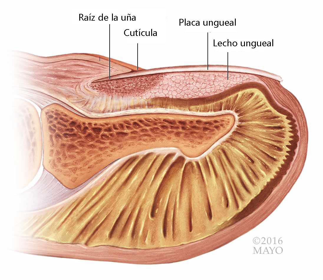 Las manos con uñas quebradizas generalmente pueden fortalecerse con algunas medidas básicas de autocuidado. Si pese a intentar con esas técnicas usted no observa ninguna mejoría después de un mes, considere hablar con su médico o acudir al dermatólogo.Ilustracin mdica de la ua (2) SP