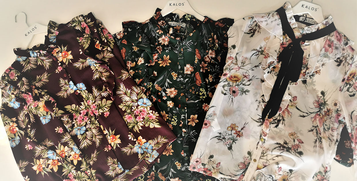 El primero de ellos esta conformado por una blusa de manga larga de tela fresca con un tono de fondo en beige, verde o vino con diseño floral. Esta blusa va perfecta con un pantalón de vestir blanco, azul o negro.