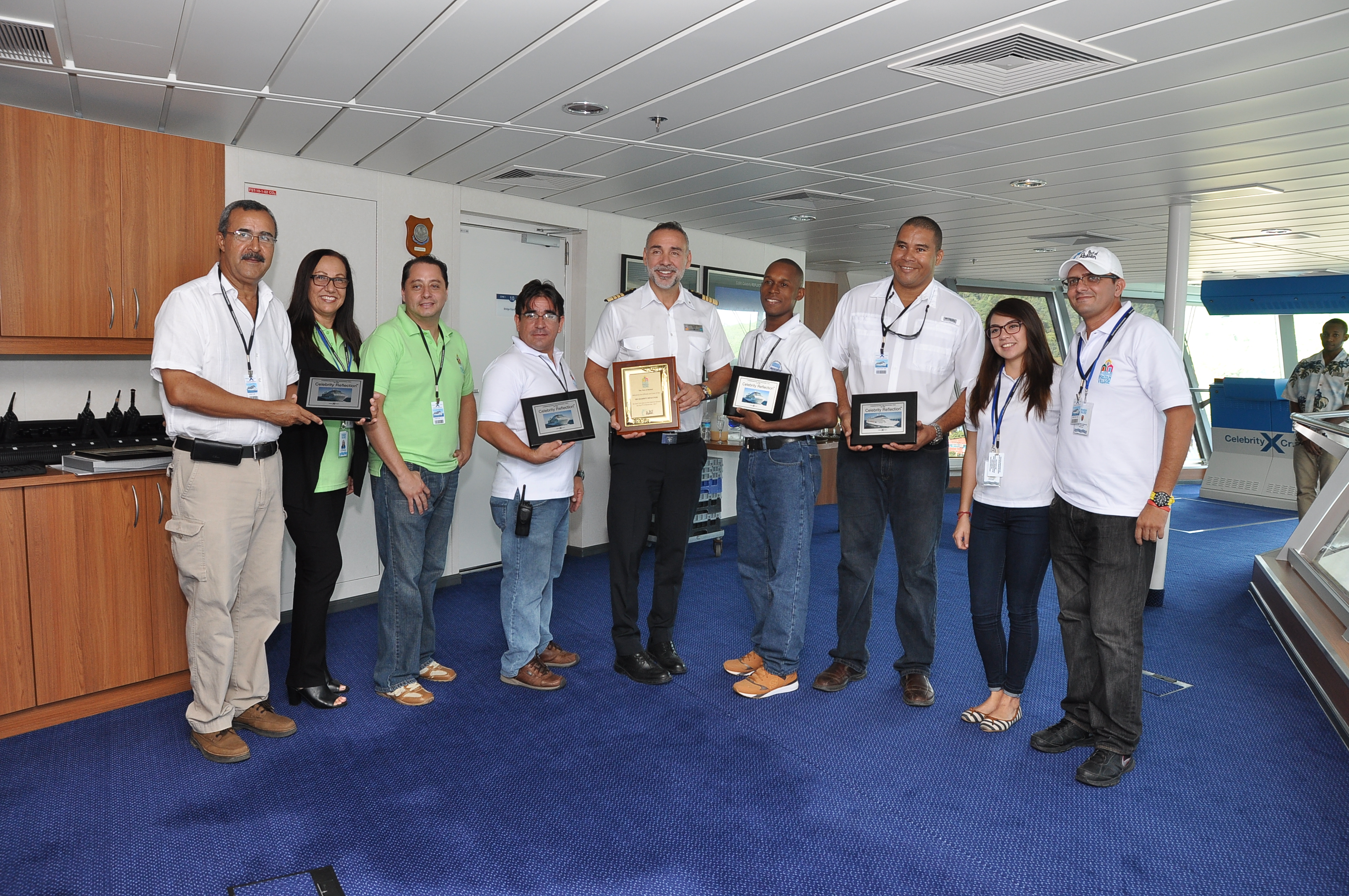 Ejecutivos de la gerencia del Puerto Crucero de Roatán, Roatan  Village, abordaron el barco  para la ceremonia de bienvenida e Intercambio de placas, de manos de Roberto Lavenant,  gerente de Operaciones de Roatan Village, el capitán del Barco recibió el acostumbrado reconocimiento.