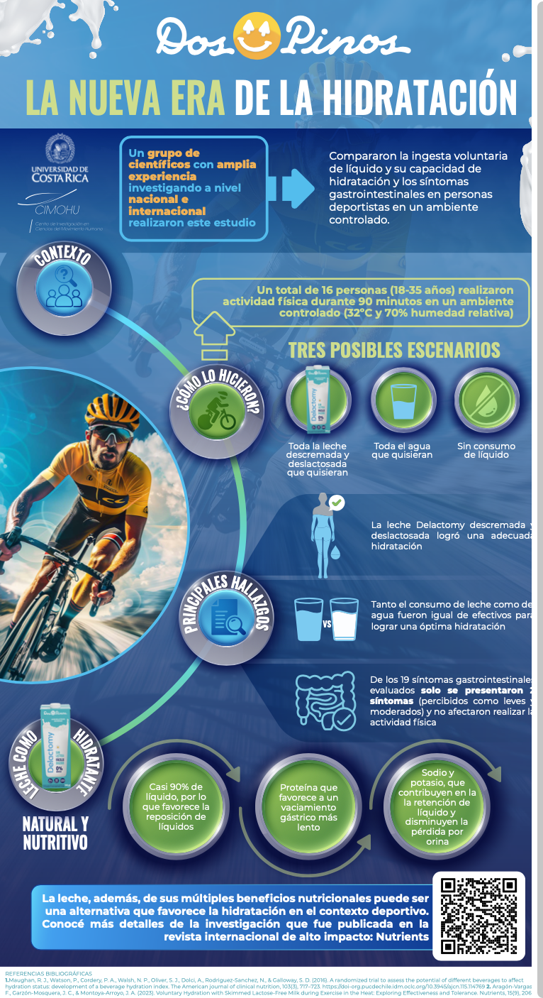 Un estudio llevado a cabo por el Centro de investigación en Ciencias del Movimiento Humano (CIMOHU) de la Universidad de Costa Rica (UCR), reveló que la leche Delactomy descremada, es una alternativa para hidratar durante la actividad física.