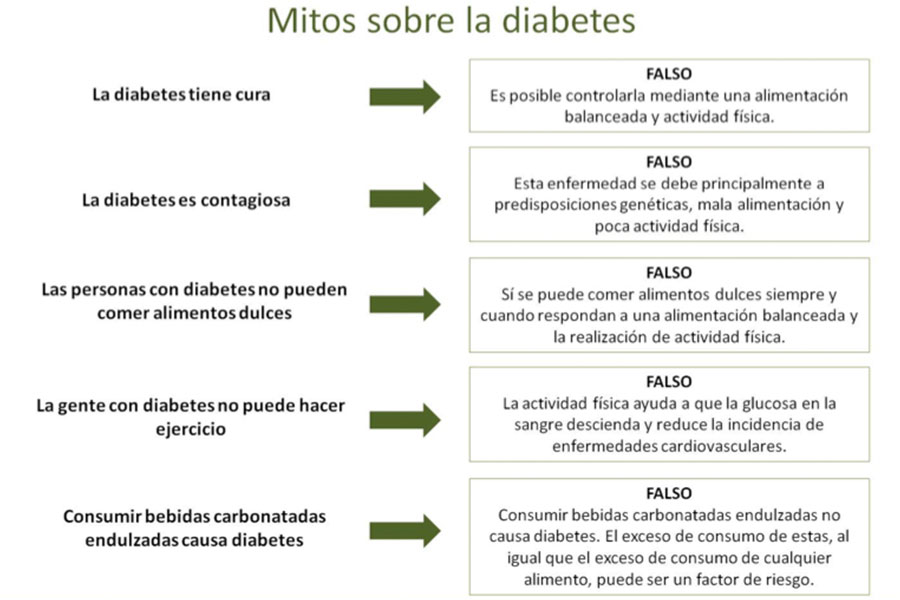 El siguiente recuadro le muestra algunos de los principales mitos que rodean la diabetes. Revíselos y determine qué tanto conoce sobre esta enfermedad.