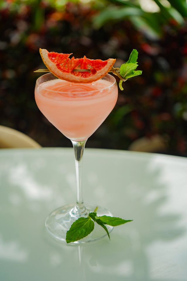 La bebida combina la pureza del tequila blanco con la frescura de la mezcla de jugo de toronja y naranja. El toque distintivo lo aporta el jarabe de granada infusionado con hoja santa y una generosa capa de espuma de Campari.