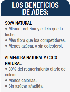 Durante el proceso de producción, se agregan nutrientes para potenciar su aporte. AdeS está dirigido a todas aquellas personas que buscan una alternativa a la leche de vaca, igualmente nutritiva y sin lactosa, pues estos productos se pueden consumir en distintos momentos del día para contribuir con una dieta equilibrada.