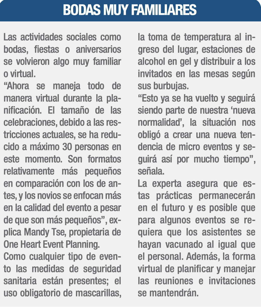 “La industria lo que ha hecho es prepararse para ese nuevo horizonte que está por venir, con medidas de seguridad sanitaria y con experiencias que pueden incluirse, como, por ejemplo; los complementos virtuales, que vienen a darle un alcance mucho mayor a cualquier tipo de evento. Con este nuevo entorno vienen muchas posibilidades de generar nuevos networking, nuevas interacciones a nivel de ideas”, explica Rojas.